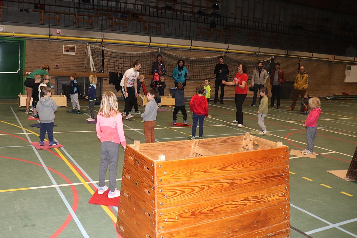 Ook de U8-ers waren voor de gelegenheid afgezakt naar de turnzaal en mochten, nadat ze een penaltyshot lukten, een
